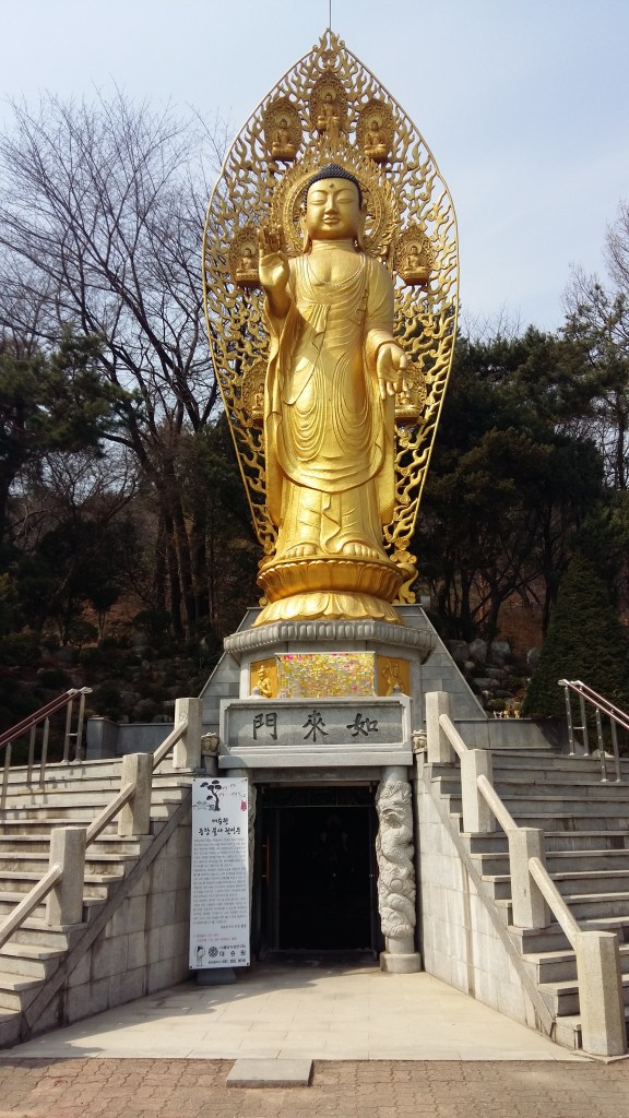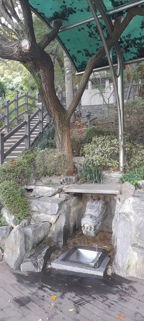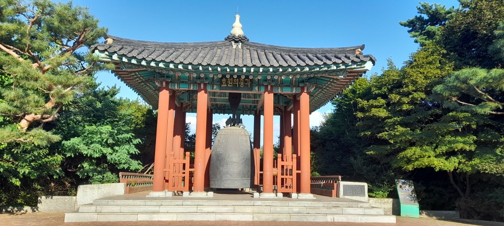 À l’aplomb du temple, une cloche de bronze, encore en usage, est accessible aux visiteurs. On peut la sonner contre 1000 won (68 centimes au moment de ma visite)