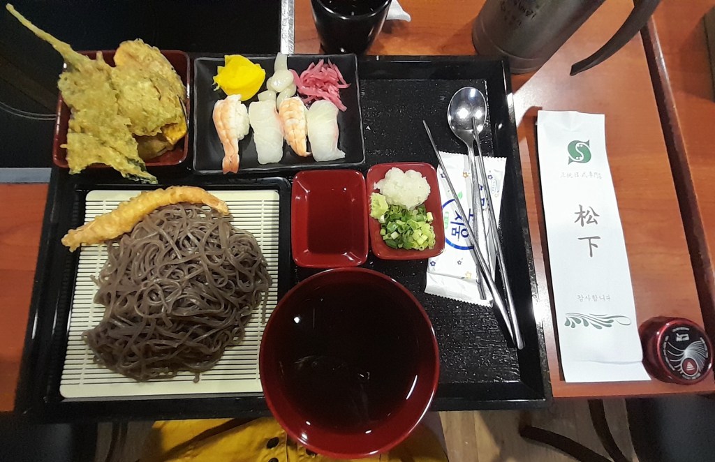 Bref, il est midi et j’ai faim. Un resto de nouilles tout proche du guichet et à prix abordable me permet de me sustenter rapidement. Ce sera un poncif de ce voyage : la nourriture y est accessible aisément et à des prix imbattables, pour nos standards français. Le ventre plein, j’acquiers un billet en bus limousine, pour me rendre à la gare routière de Suwon. Quand je ressors du terminal, pour attendre le bus local, la chaleur extérieure est déjà écrasante. De la gare routière, je prends le bus et étrenne ma KTC. J’oublie de la viser en sortant du bus, erreur que je ne referai pas. J’arrive vers quinze heures à la guest-house, en nage et haché. Je m’effondre pour un cycle complet de sieste, malgré la chaleur.