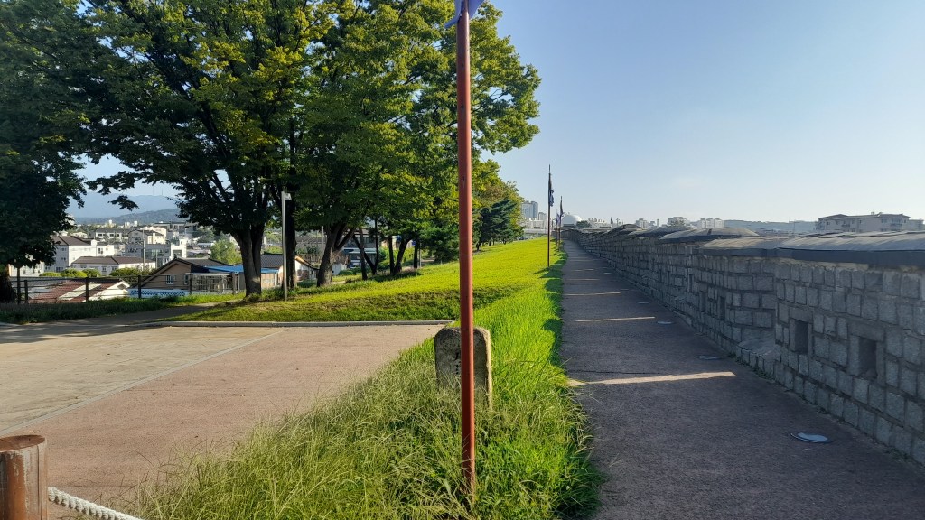 Le pied vaillant, je sors commencer ma journée de visite. Arrêt à la supérette du coin, pour m’acheter deux onigiris, pour le petit déjeuner et en avant ! Aujourd’hui, j’ai l’intention de finir la visite des remparts de Suwon.
