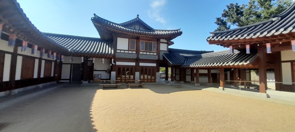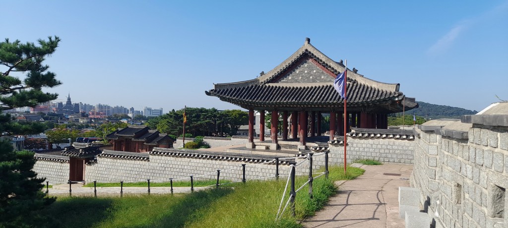 Une dizaines de minutes plus tard, je retrouve la porte Janganmun, au nord des murailles et boucle ainsi ma visite des remparts. Désormais, je rentre dans le dédale des rues vers l’entrée du palais temporaire. Je fais un détour par le centre de la culture traditionnel de Suwon. Les bâtiments de style traditionnels, ouverts au public et proposent tout un tas d’évènements festifs, de cours de cuisine etc. Si un jour je retourne à Suwon, je m’inscrirait à l’une des activités proposées.