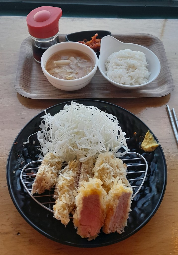 J’ai donc deux heures à tuer avant mon train. J’ai faim et traverse le grand rond point pour aller dans un restaurant de tonkatsu (porc pané), à proximité de la gare. Un gros avantage de la Corée, c’est le pouvoir manger en plein milieu de l’après-midi. Je suis seul client, et le cuisinier me prépare un repas puis reprends sa pause. Les lieux sont à l’ombre, en hauteur, avec du jazz. C’est un moment de calme où je mange lentement, en observant les gens qui s’affairent à proximité de la gare. Le repas est excellent, qui plus est et le cuisinier affable.