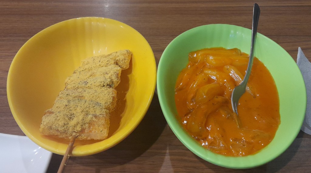 Pour le repas du soir, j’espère faire comme jusqu’à présent et trouver un restaurant ouvert à proximité. Je ne pars pas du bon côté et fini par atterrir dans un resto de chimaek (chicken & maekju : poulet frit et bière) où je commande un Tteokbokki rosé et une brochette de tteok grillé aux saucisses. C’est dégueu. Trop pimenté, trop sucré, trop cuit. C’est franchement le pire repas du séjour.