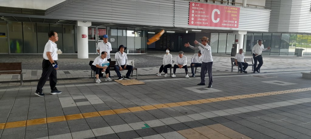 Un groupe de femmes m’invite à jouer aux flèches avec elles. Je m’en sors sans aucun panache, mais je m’amuse pendant dix minutes dans la bonhommie. Le tambour retentit, sonnant onze heure et tout le monde plie les gaules. Je les saluent et repars vers la gare. J’ai presque raté mon train pour Suncheon. Je le prends de justesse.