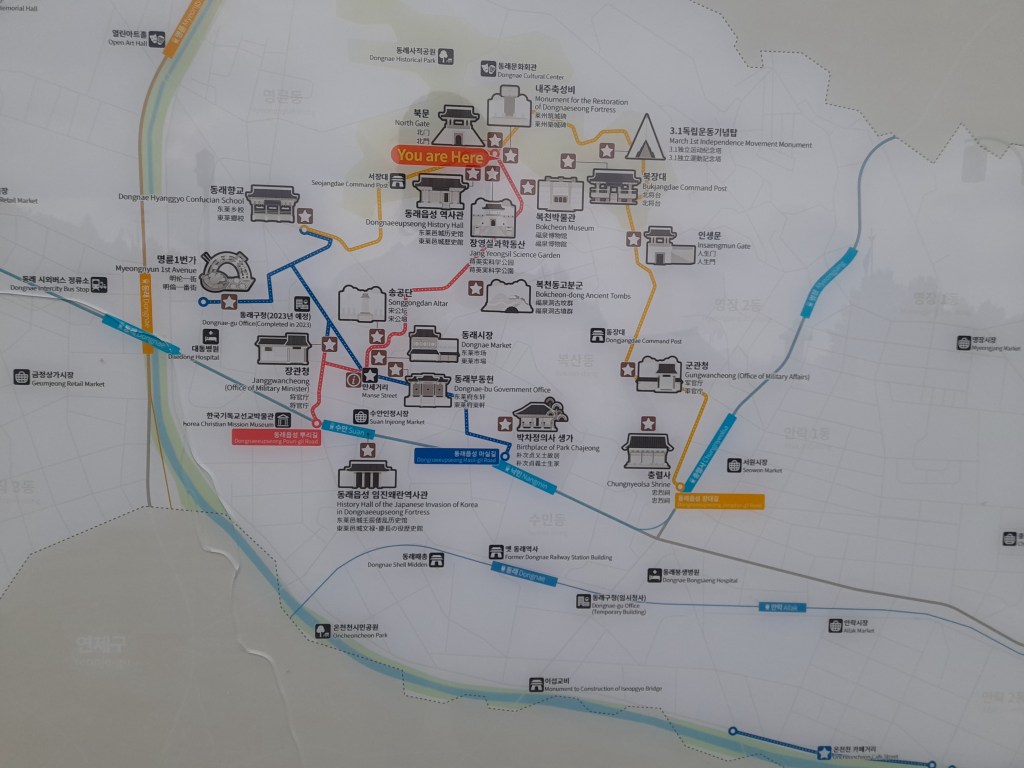 Ma dernière visite prévue pour cette longue journée est le musée Bokcheon, au cœur d’un parcours de sites historiques, à vingt minutes de marche de là où je suis. D’après navermap, le musée ferme à vingt deux heures. Hélas ! Duperie ! Quand j’arrive à dix-huit heures trente, le musée est déjà fermé depuis une demi-heure.