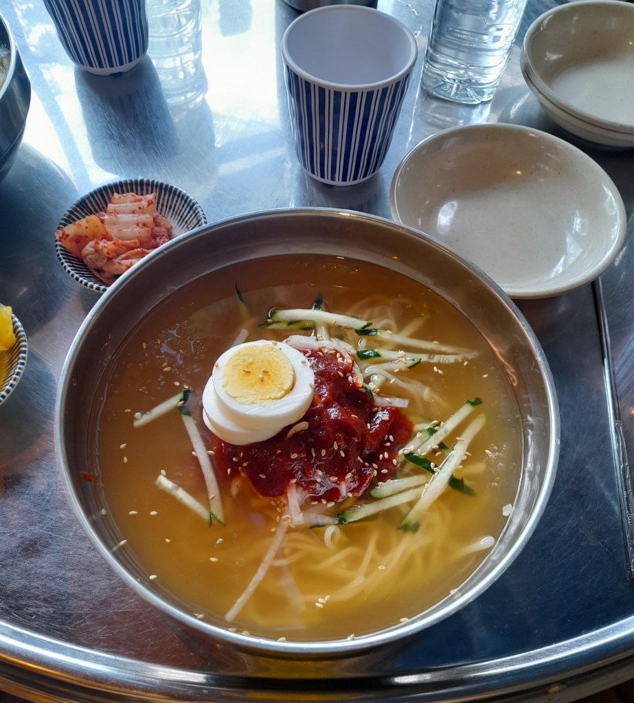 Aujourd’hui, je quitte Busan et remonte vers le nord. J’arrive sans soucis à al gare routière pour prendre le car vers Gyeongju. Je galère un peu à m’y repérer car cette gare est plus grande que celles où je suis allée jusqu’à présent. J’y croise un autre touriste, de HongKong. Nous échangeons brièvement avant de monter dans le même bus. Nous voyageons séparément mais une fois sur place, nous nous retrouvons comme deux ronds flans, seuls touristes étranger avec la faim au ventre. étant tous deux d’un naturel chaleureux, le courant passe rapidement. Ayant réservé une chambre à proximité de la gare routière, je passe déposer mon sac de voyage puis nous nous mettons en quête d’un restaurant tout en apprenant à nous connaitre.