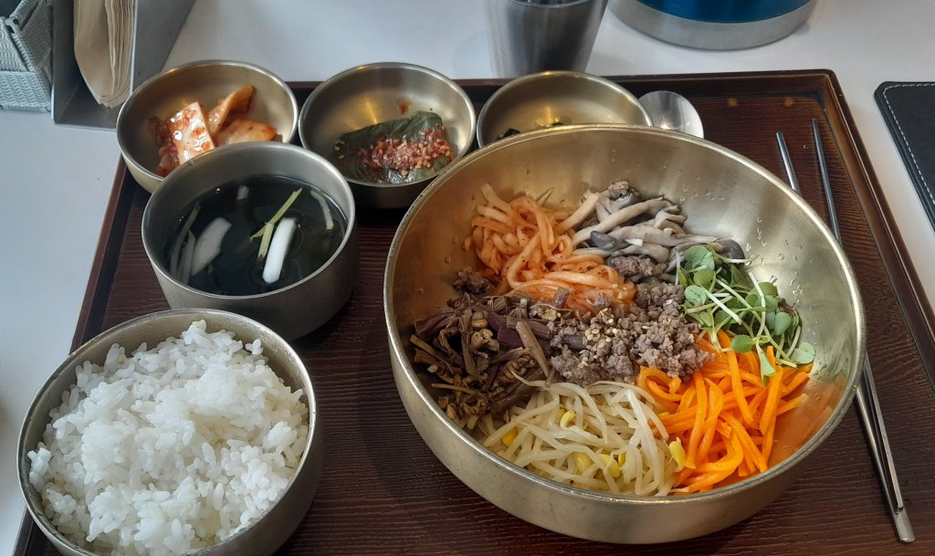 Je sors de l’expo avec de belles images pleins la tête. Je commence à explorer les couloirs mais rapidement, j’ai faim. L’enceinte du musée comprends plusieurs bars et trois restaurants. C’est très pratique, même les tarifs si sont un peu au dessus de ceux qu’on trouverait en ville, cela reste raisonnable. Je choisit le plus proche : la restaurant de la pagode. Le rush du midi est terminé et je peux m’installer tranquillement. J’y commande un bibimbap copieux qui m’est servit en temps record.