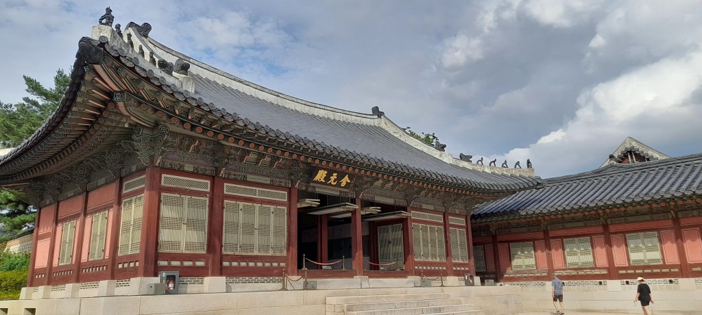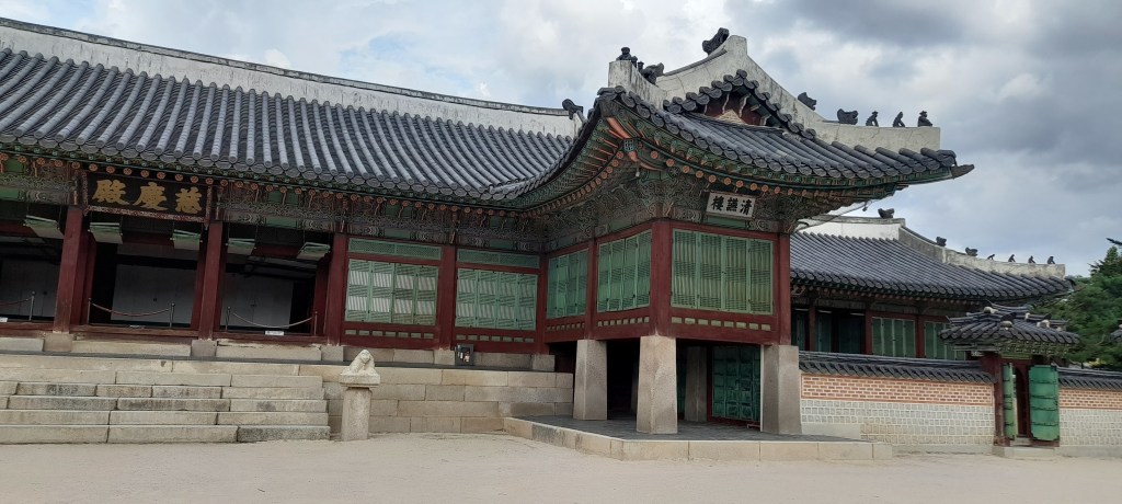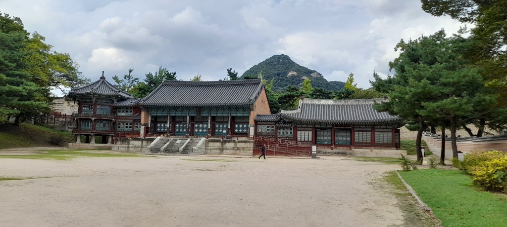 édifié à la fin du quatorzième siècle au pied sud du mont Baegak, agrandit,reconstruit, il est le symbole du pouvoir en Corée depuis des siècles et son plus grand palais, avec une surface de plus de quarante trois hectares. Seuls quelques bâtiments sont encore debout suite aux destructions japonaises.