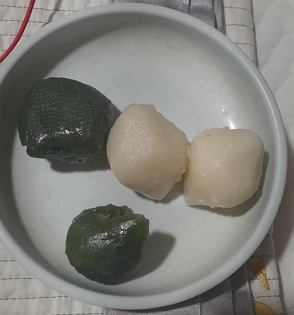 Alors que je sors de la douche, on frappe à ma porte je me couvre rapidement pour ouvrir à ma logeuse qui est déjà sur le pallier, avec un présent en main. Elle m’apporte des Songpyeon, qu’elle a fait elle même. La tradition veut que l’on fasse des Songpyeon en famille pour chuseok et de se les offrir. Extrêmement touché par cette délicate attention, je l’embrasse sur chaque joue. Elle recule, médusée par ma démonstration d’affection très latine. Je m’excuse, ce qu’elle balaye rapidement et me souhaite une bonne soirée. Et je passe en effet une agréable soirée à déguster mes quatre songpyeon.